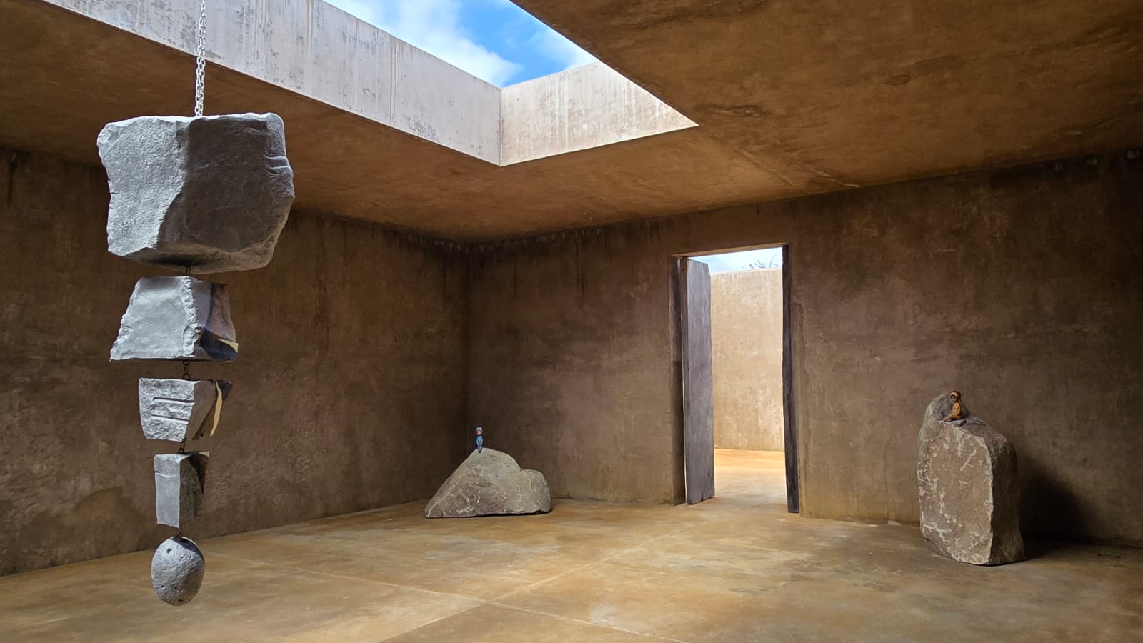 location along a narrow strip of desert between the mountains and the sea resonates with the elemental power of his art.